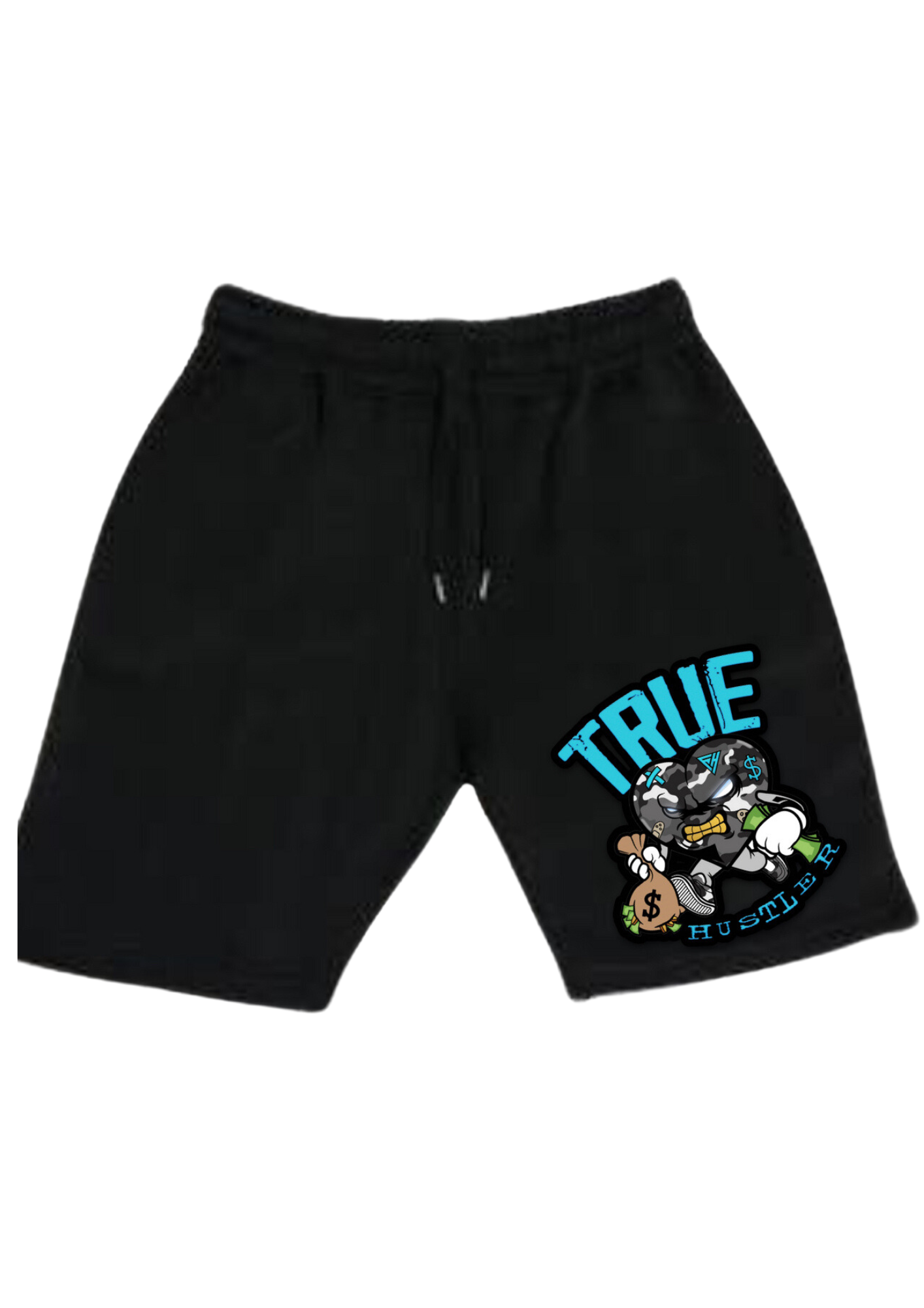 The True Hustler Graphic Shorts represent the grind and hustle mindset. Featuring a bold cartoon-style hustler graphic holding a money bag, these shorts bring streetwear attitude with everyday comfort.